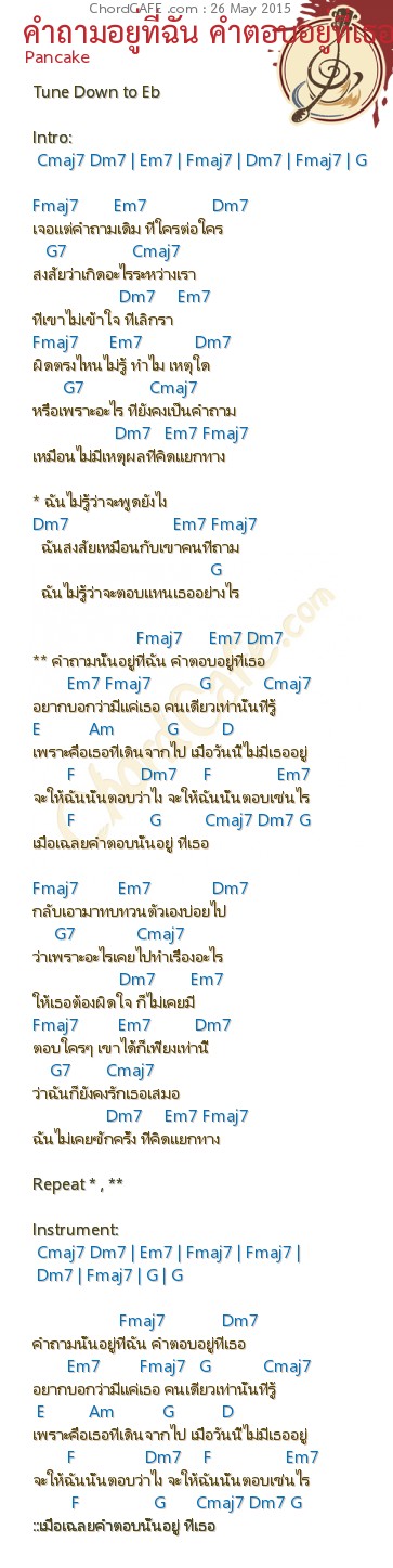 คอร์ดเพลง คำถามอยู่ที่ฉัน คำตอบอยู่ที่เธอ Pancake