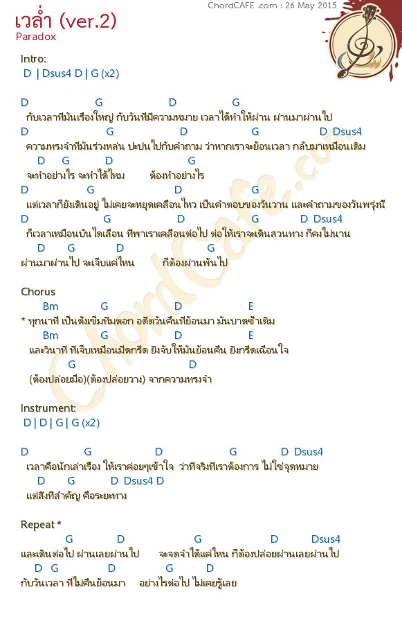 คอร์ดเพลง เวล่ำ (ver.2) Paradox รูปภาพคอร์ด เวล่ำ (ver.2) เขียนคอร์ดโดย GirlGirl : 25 Jul 2013 ChordCafe > Chord Guitar / คอร์ดกีต้าร์ > Paradox > เวล่ำ (ver.2) ** หน้านี้เป็น "โหมดรูปภาพ" สำหรับ Save หรือ Download หากต้องการไปหน้าแบบ Full Option ให้คลิกปุ่มนี้ < กลับไปหน้าหลักคอร์ดเพลง เวล่ำ (ver.2) – คอร์ดเพลง เวล่ำ (ver.2) Paradox คอร์ดเพลง เวล่ำ (ver.2) เวล่ำ (ver.2) Chord < กลับไปหน้าหลักคอร์ดเพลง เวล่ำ (ver.2)