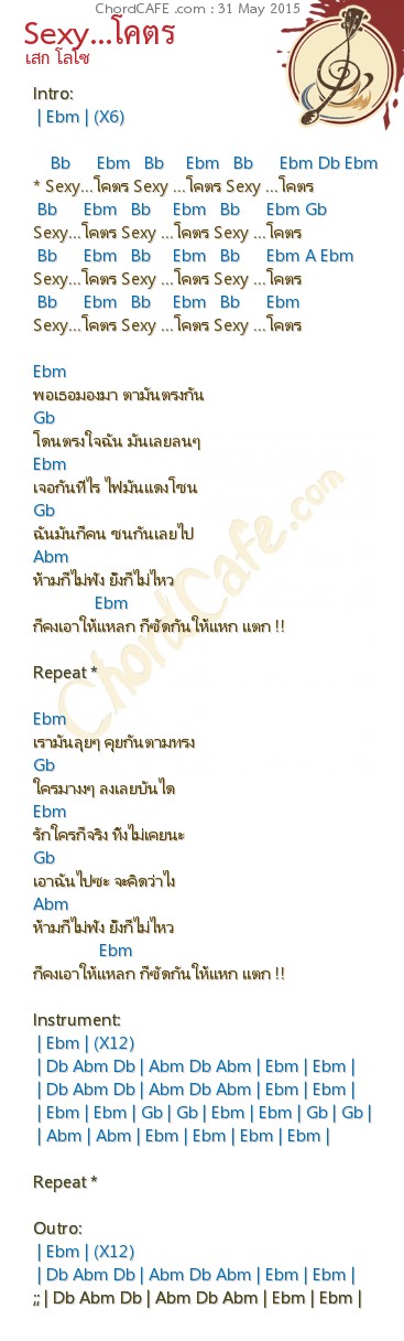 – คอร์ดเพลง Sexy...โคตร เสก โลโซ